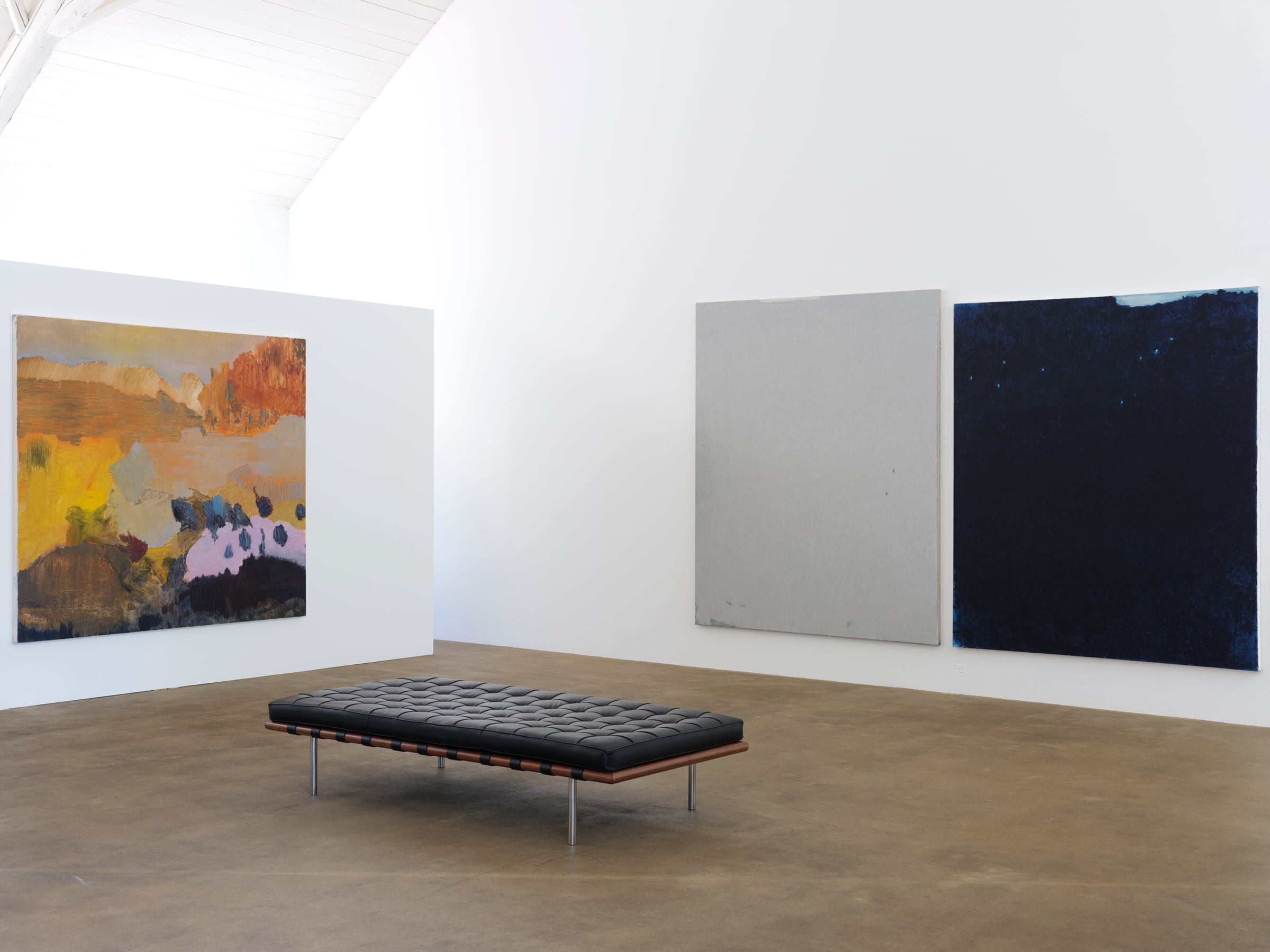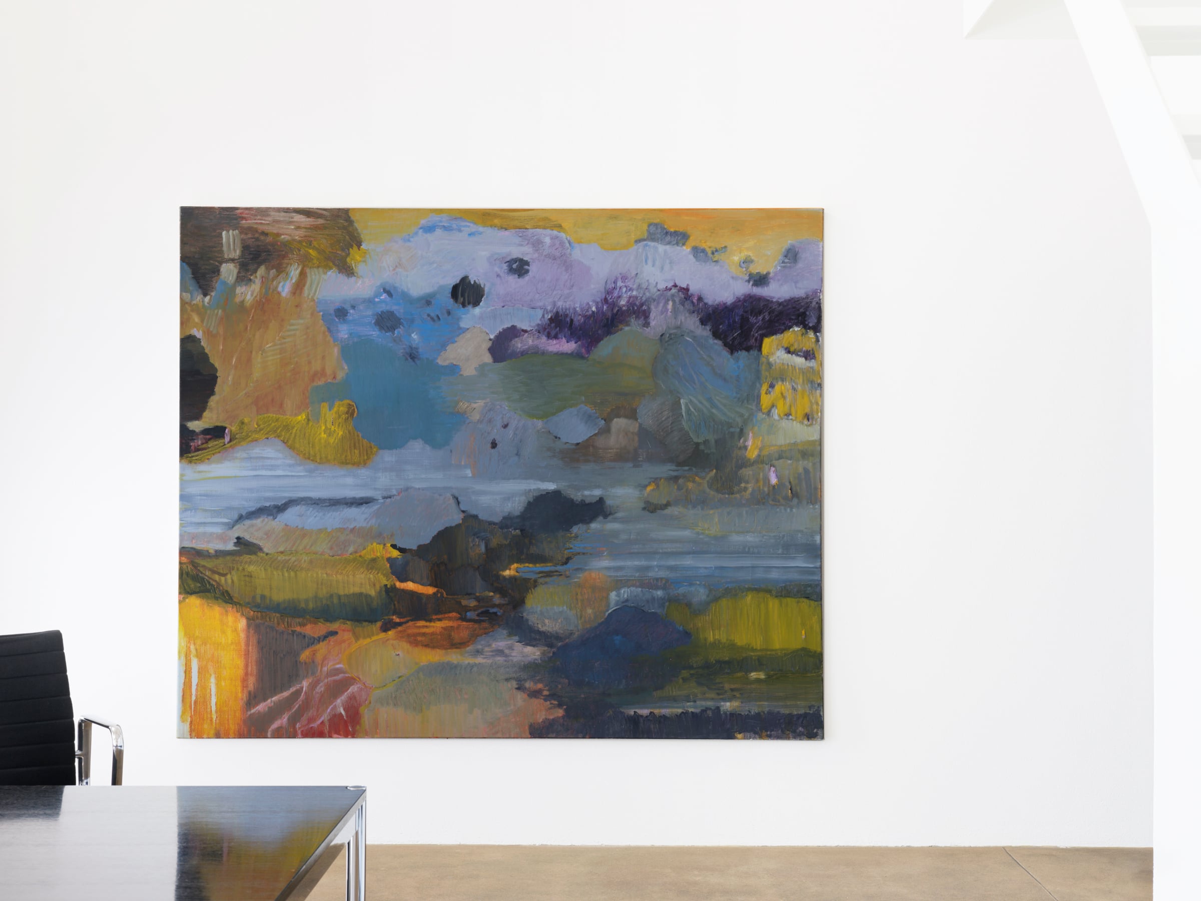 Zufall, Modell und als dritter Schlüsselbegriff die Erinnerung, eine ähnlich gute, anregende und auch unzuverlässige Freundin: Erinnerung hat mit Schichten und dem dazwischen zu tun, mit quasi geologischen Schichten und Ablagerungen. Erinnerungen kommen an die Oberfläche und sinken wieder ab in den Grund, auch sie sind der im doppelten Sinne Grund. So wird die Grenze zwischen Gegenstand und Fläche fliessend, verzahnen sich in der Fläche, tendieren, wie die Malerin sagt, zur ornamentalen Zweidimensionalität, bis hin zur monochromen Fläche. Der dänische Geologe und Maler Per Kirkeby, er nun tatsächlich ein Freund der Dichterin Inger Christensen, hat einmal behauptet, Malerei sei überhaupt Erinnerung, der Anlass zur Malerei sei die persönliche Erinnerung – um im Nachsatz die Warnung nachzuschieben: «Willst du aber ein Bild malen, dann vergiss alles über die Erinnerung.»